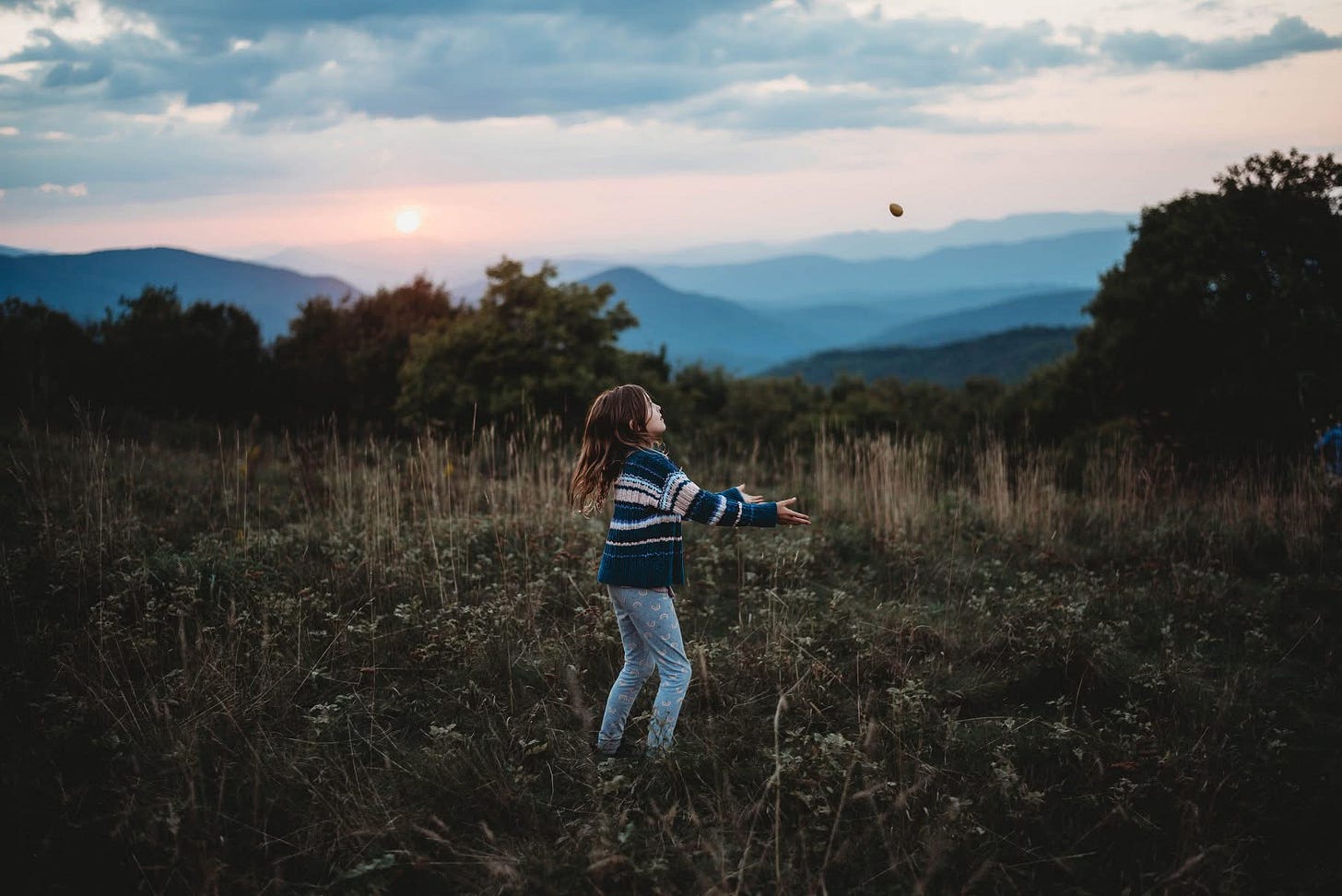 Photo: Mila listening to sunset and milk pod fluff