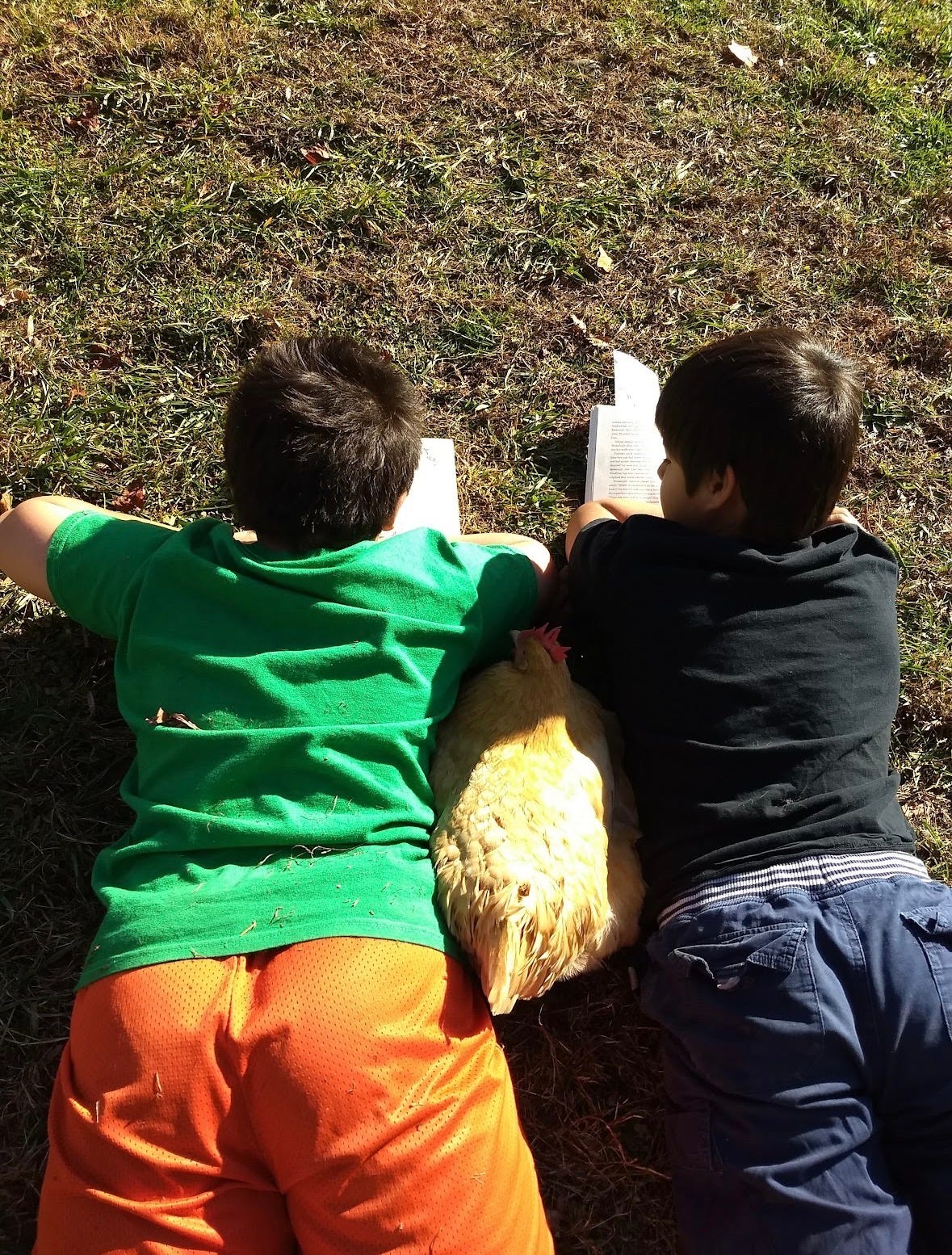 Photo: my students at SOLA reading with a hen