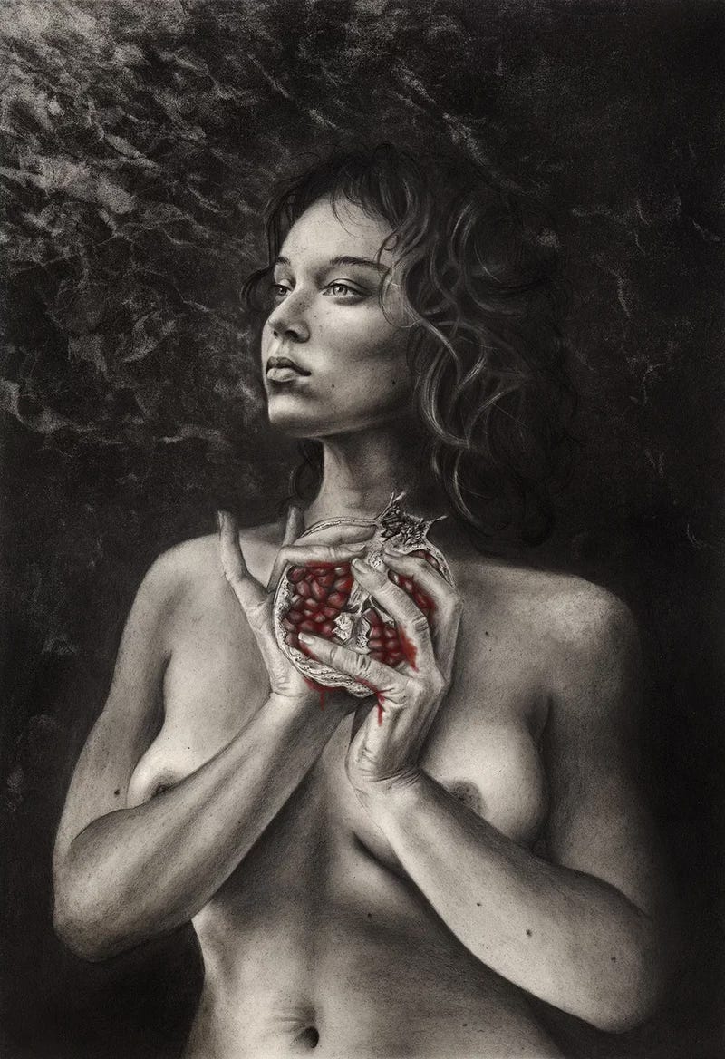 Look through the lens of story from inside out. Not outside in. We contain all the parts, all the players, all the gods/goddesses of the stories within. They are reflected also outside. But the within -this sacred landscape within your physical vessel…She has a message for you. Persephone moves through you differently than she moves through me.